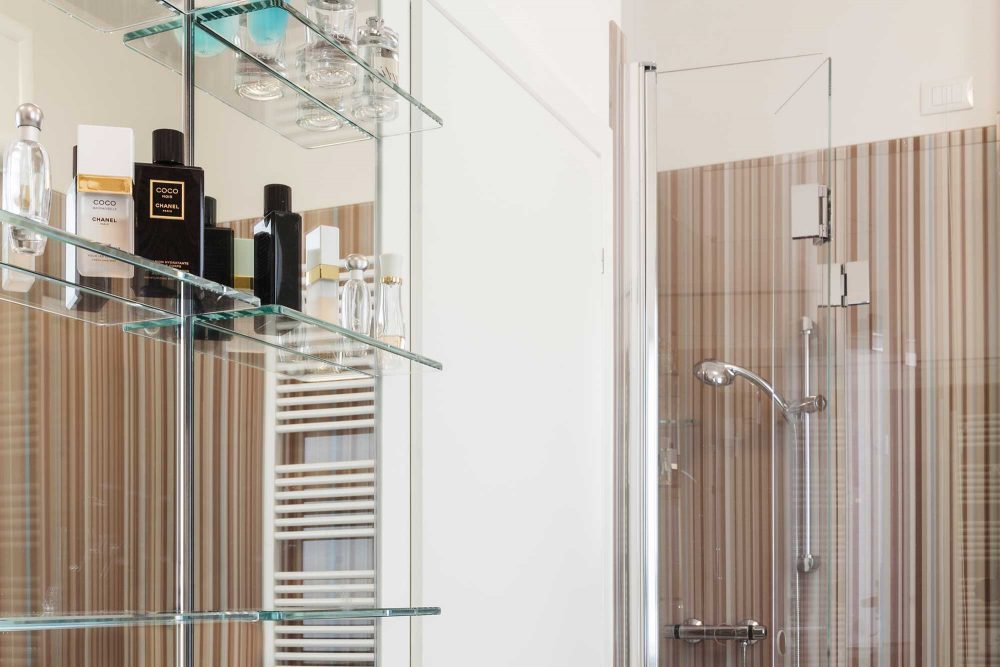 • Pareti doccia e specchio bagno: le pareti in vetro sono state trattate in maniera tale da garantire un risultato duraturo sia per quanto riguarda la stabilità e la solidità che per assicurare un effetto di massima trasparenza. Lo specchio, così come il vetro per la doccia, soddisfa tutti i requisiti tecnici e di sicurezza garantendo la resistenza agli eventuali urti.